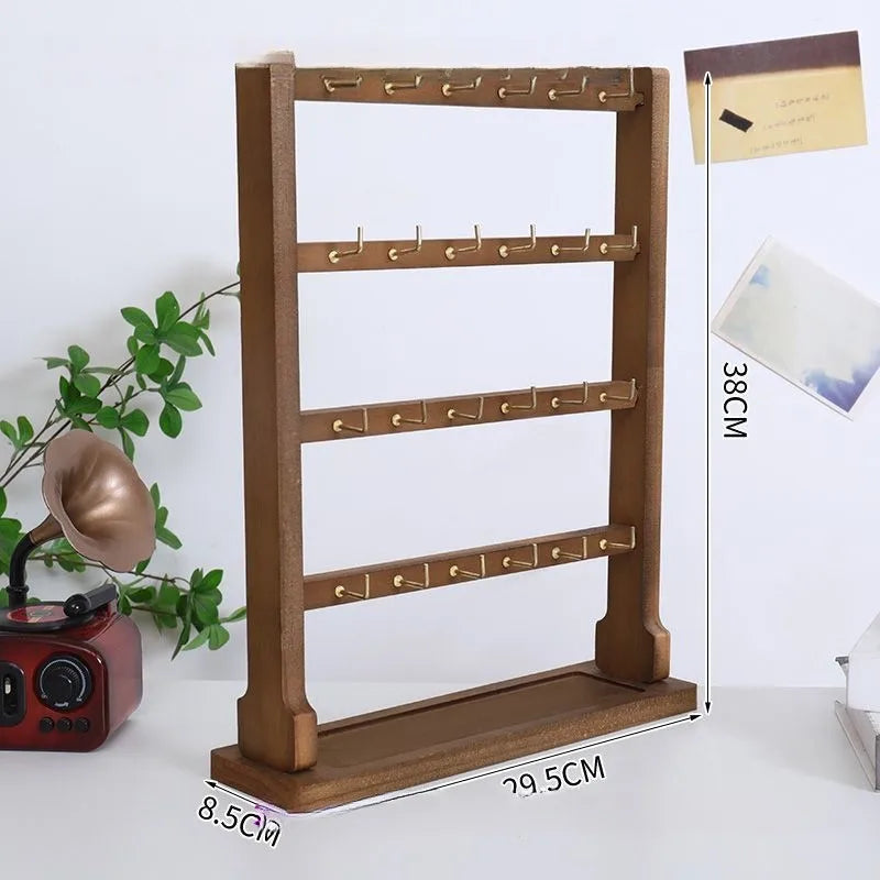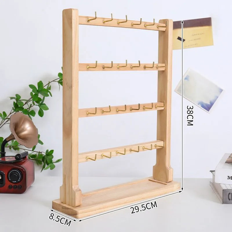 Wooden Jewelry Display Stand Earring Necklace Bracelet Organizer Artistic Style Market Stall Hook Keychain Holder Storage Rack