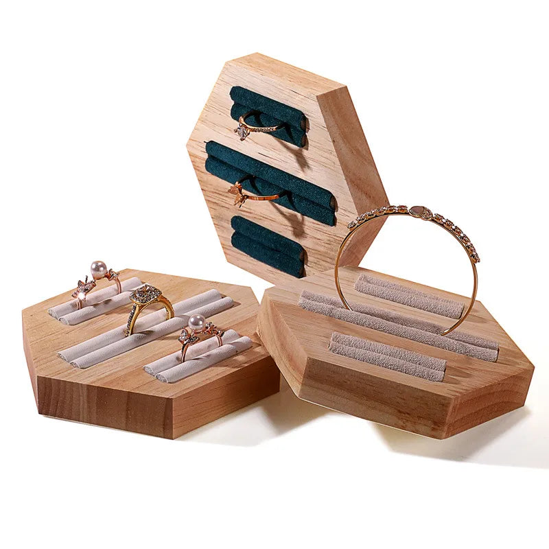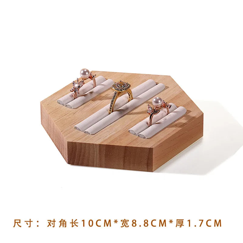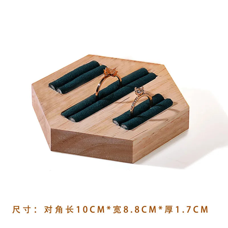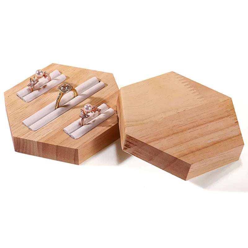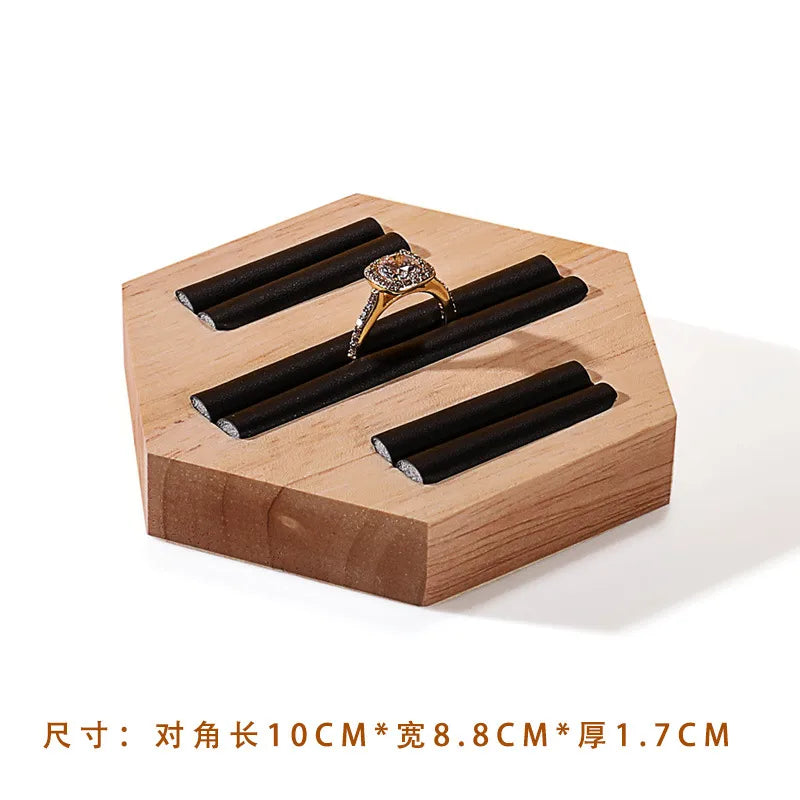 Wooden Jewelry Display Stand Ring Holder Shop Window Props Stall Selling Hexagonal Pattern Real Wood Craft Academic Style