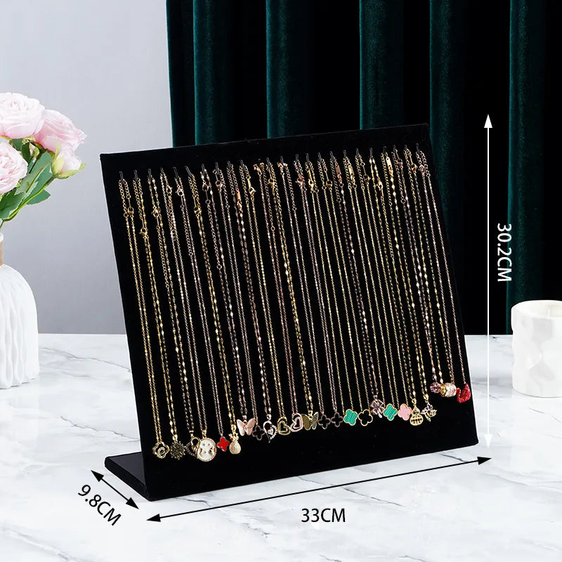 Wooden Velvet Jewelry Display Stand Necklace Bracelet Earring Ring Holder Storage Organizer L-Shaped Premium Feel Crafted