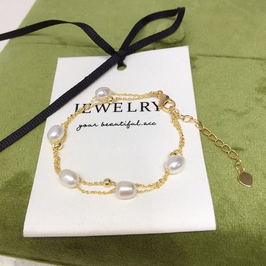Zhuji Mountain Lake 5-6mm meter natural freshwater pearl bracelet 18K bag gold flash O chain adjustable bracelet