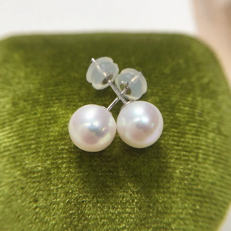 Zhuji Natural Freshwater AK Pearl Selection Advanced Sense Aurora Perfect Round Flawless Pearl Earrings S925 Sterling Silver Earrings