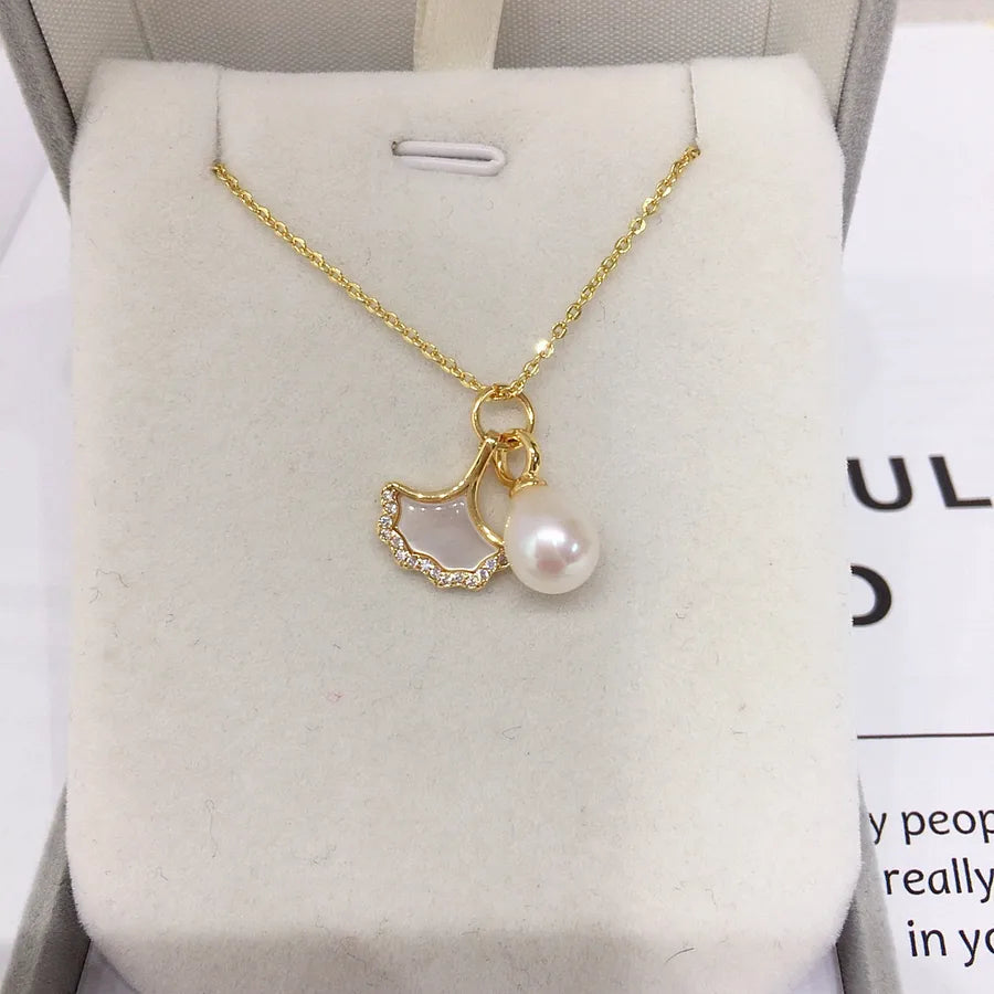 Zhuji origin natural freshwater pearl pendant ginkgo leaf natural sea shell mother pearl pendant jewelry wholesale